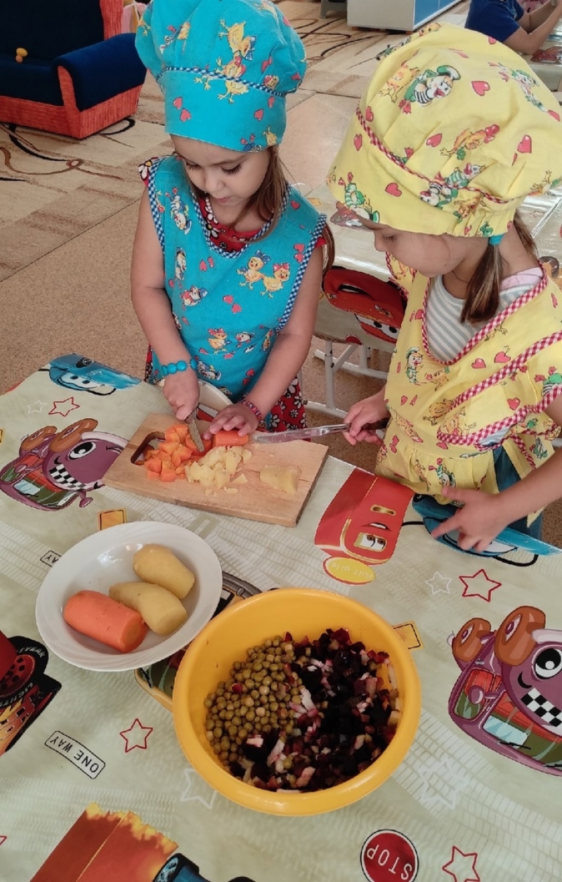 Итогом мероприятием тематической недели было приготовление винегрета. Ведь что может быть для детей лучше, чем приготовить блюдо собственными руками! Ребятам очень понравилось готовить винегрет и они большим удовольствием съели его!